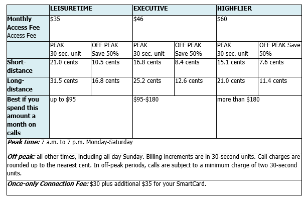 1. The monthly access fee is the highest but the call rates are the lowest.