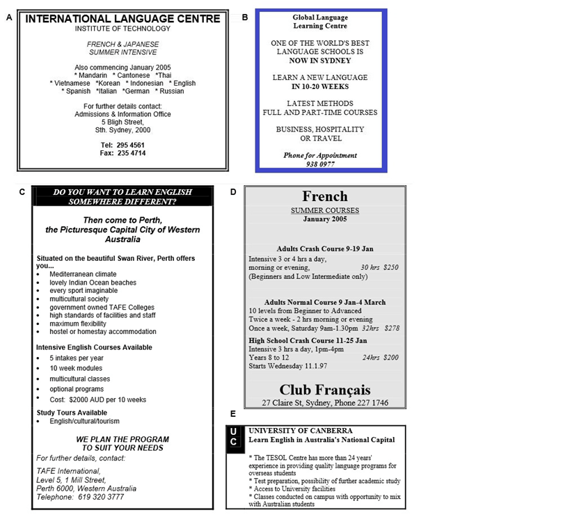 Look at the five advertisements, A-E. Write the correct letter, A-E , in boxes 1-8 on your answer sheet.