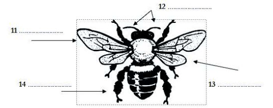The diagram below shows the worker bee. Label the diagram. Choose NO MORE THAN TWO WORDS from the passage for each answer.