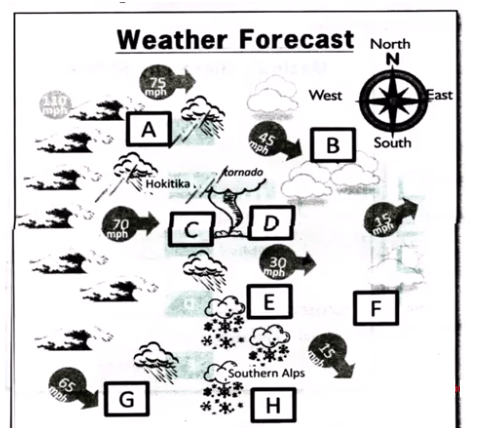 Label the map below. Write correct letter A-H next to questions 11-15.