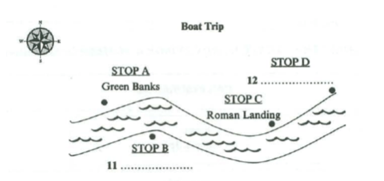 STOP A: Main booking office First boat: 8 am Last boat: (13)………….pm | Palace | – has lovely (14)…………….. |