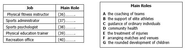 Complete the table below. Write the appropriate letters A-G against question 36-40.
