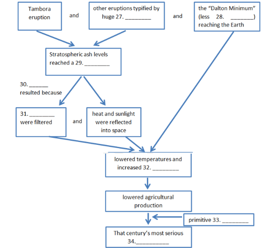Adding further complexity to the issue, there had been other significant volcanic eruptions in the years prior to Tambora — in the Caribbean, Japan, and the Philippines — in which massive dust clouds were the characterising feature. Looking at the Philippino example, 1814 saw the most destructive eruption of Mt Mayon ever. Killing thousands, burying whole towns and villages, the volcano spewed out millions of tons of ash and rock into the high atmosphere. When we put all these factors together, the sequence is thus clearer. With the world already suffering from lower temperatures due to natural variations in the sun’s surface action, a series of severe volcanic eruptions occurred. As a result, the accumulation of ash in the stratosphere rose to a historic high, to which the mammoth Tambora explosion substantially added, sending a savage cold spike throughout the already cooler globe.