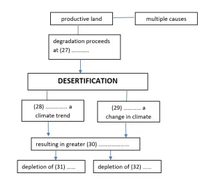 Climate change may have catastrophic effects on the human and animal world. As glaciers melt, sea levels will rise, causing extensive flooding and land (37) ……………… Another consequence of global warming is (38) …………….. which affects areas known as (39) ……………….. These areas are subject to irregular weather patterns, but also suffer from human intervention or neglect, such as inadequate or inefficient (40) ……….. systems.