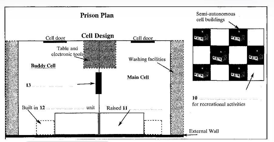 Individual cells are replanned to make them less like domestic lavatories and more conducive to learning. In an inversion of the conventional layout, the bed is placed lengthways along the external wall at a higher level, freeing up space below. Storage is built next to where they sleep and each inmate is provided with a moveable table equipped with electronic tools for study. Washing facilities are contained in a small adjoining space (included in the basic 8 sqm allowance) so reducing pressure on prison staff to manage inmate hygiene and ablution. Each cell is paired with a neighbouring ‘buddy’ cell linked by sliding doors controlled by individual prisoners to mitigate the risk of self-harm.
