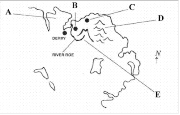 Look at the following list of places (Questions 28-32) from paragraphs A-E of reading passage 3 and their locations on the map. Match each place with its location on the map.