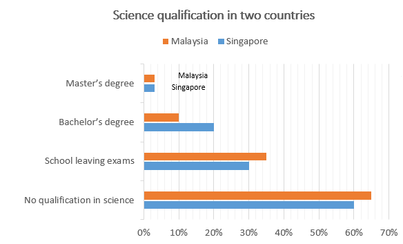 Task 1: The chart below gives information about science qualifications held by people in two countries.