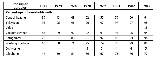 Task 1: The table below shows the consumer durables (telephone, refrigerator, etc.) owned in Britain from 1972 to 1983.